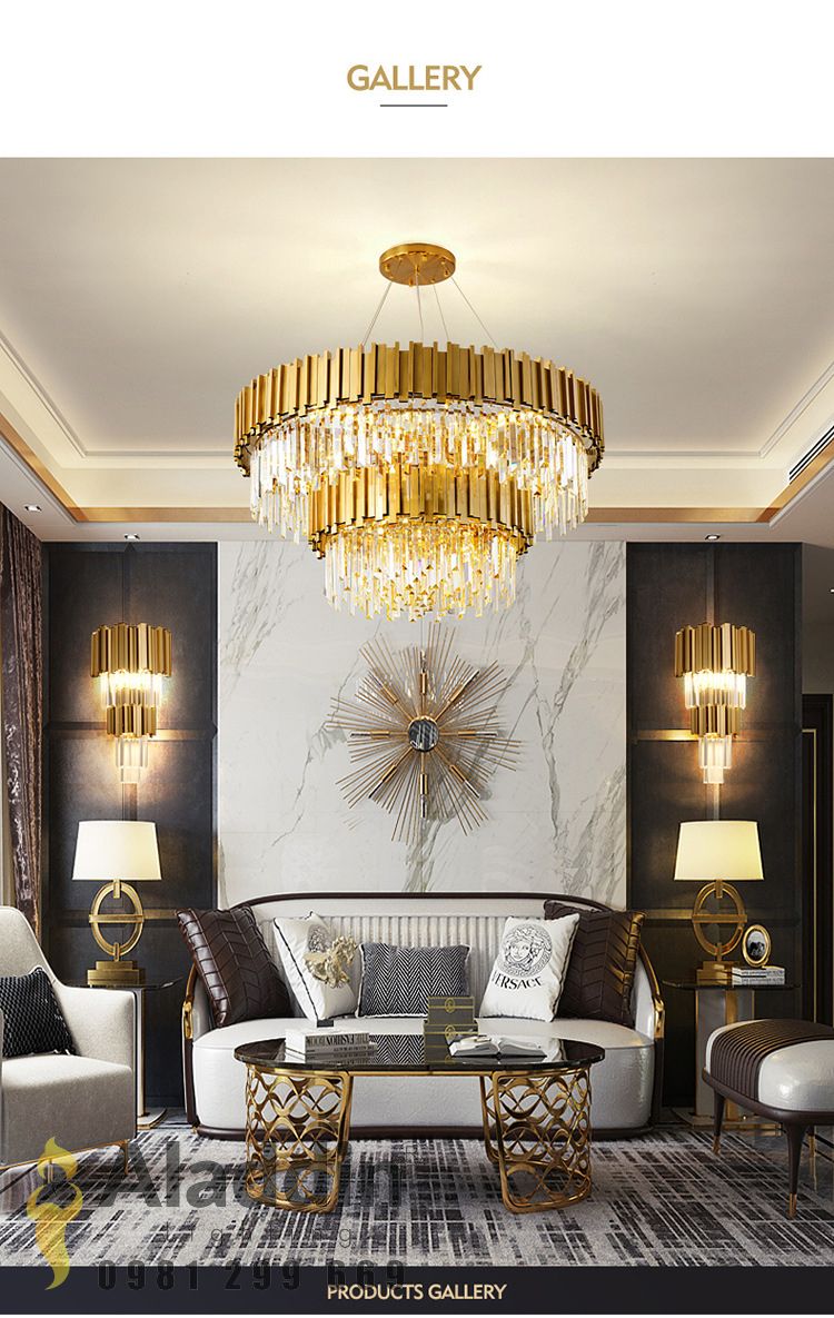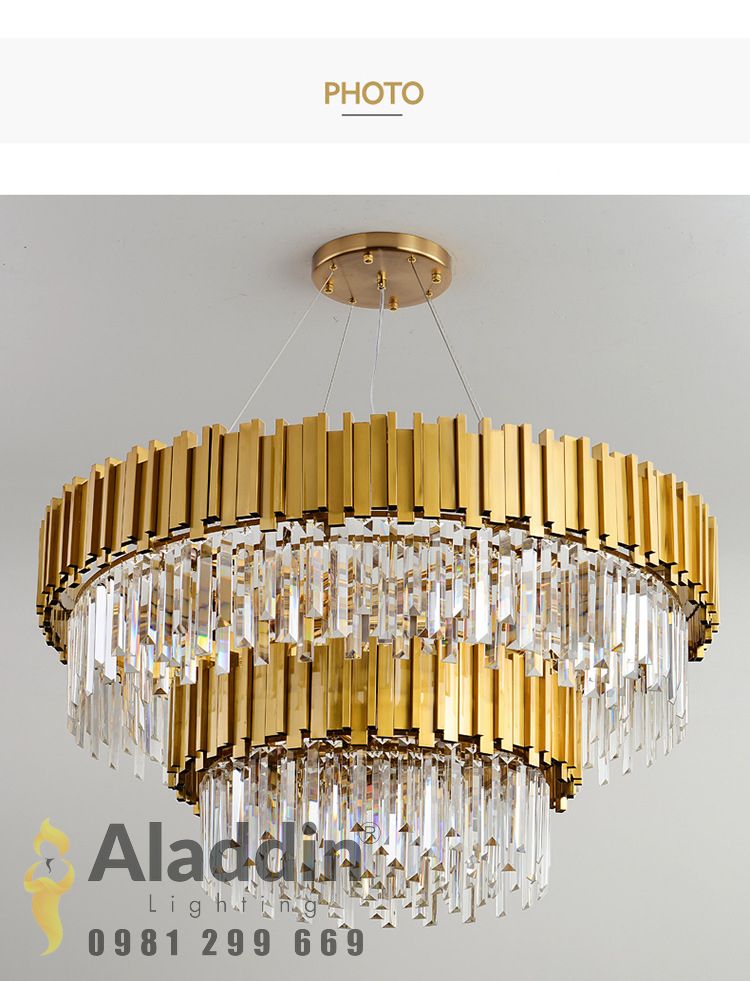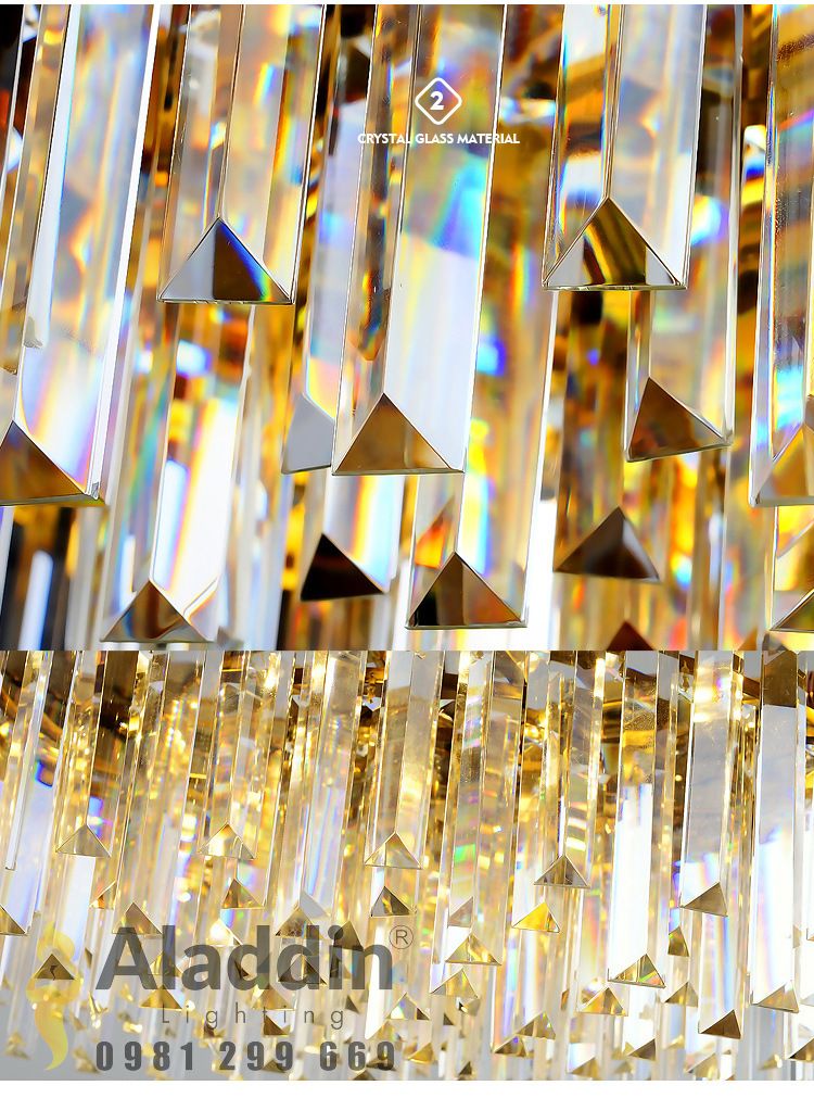 - Chất liệu: Sắt mạ đồng 100%, pha lê K5