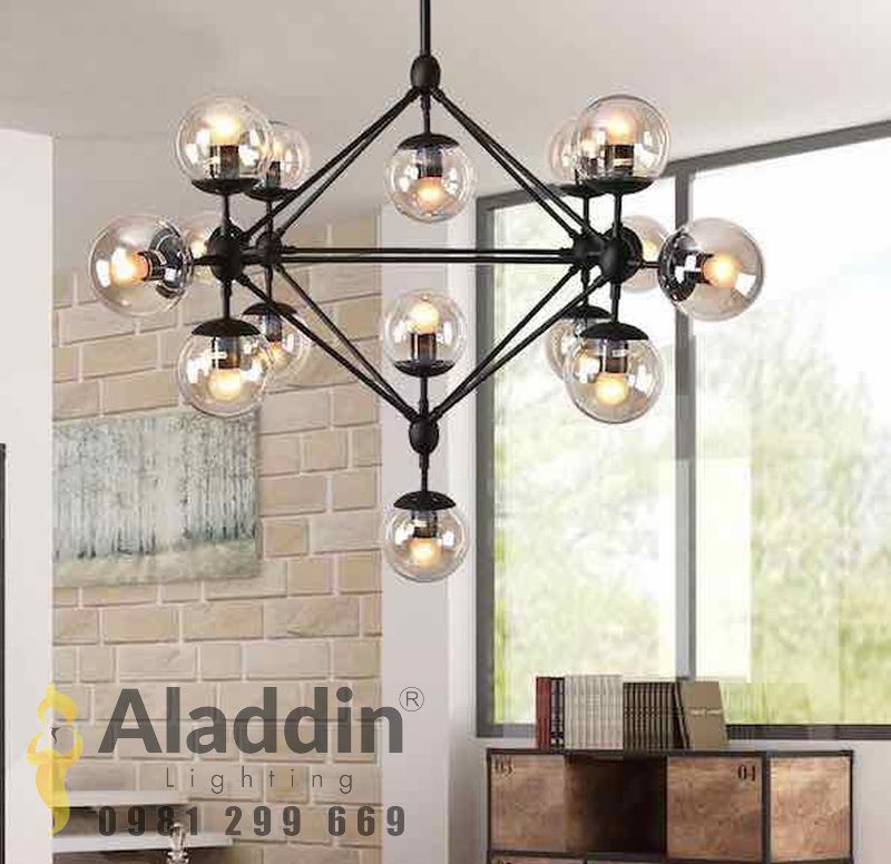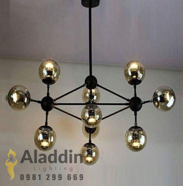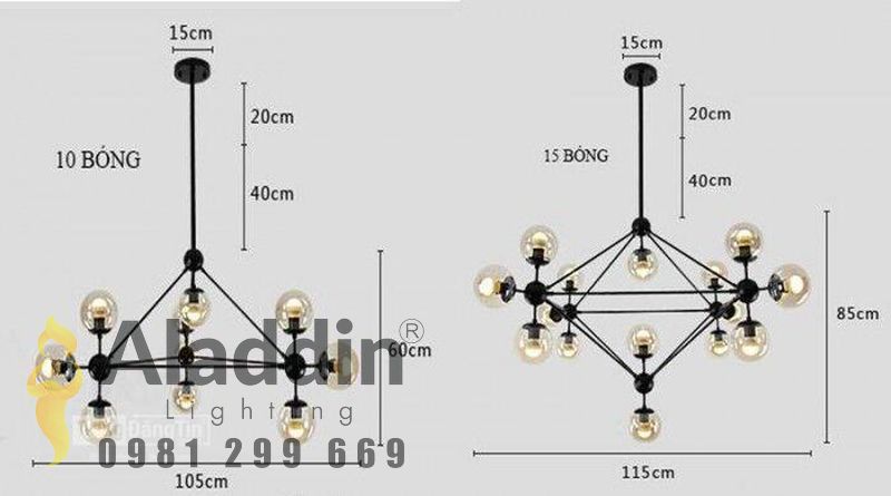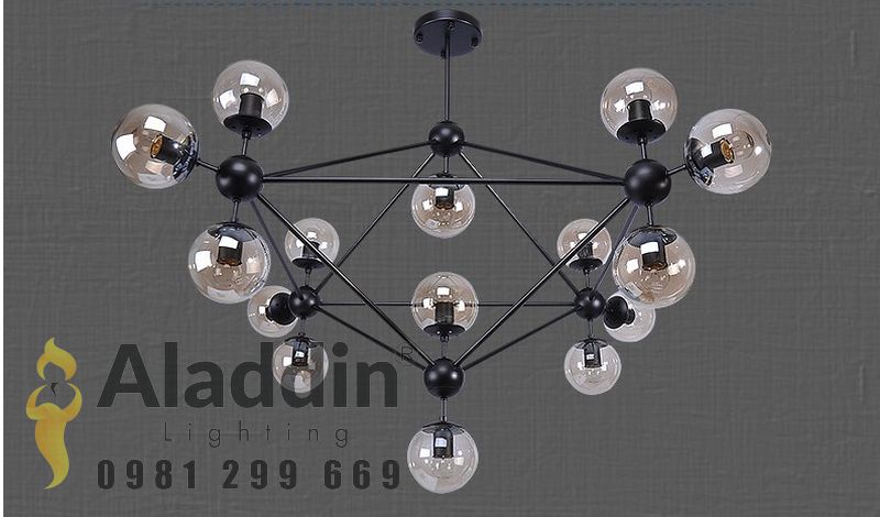 MÃ HIỆU - Bảo hành: 1 năm - Kích thước: 7 bóng (D1000xH650), 10 bóng (D1000xH650), 15 bóng (D1650xH900) - Chất liệu: Sắt sơn tĩnh điện, chao thủy tinh.